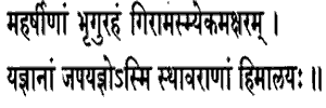 25. Of the Great Rishis I am Bhrigu ; of words I am the one syllable Om ; of offerings I am the offering, of Japa (silent repetition), of unmoving things the Himalaya.