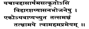 play, on bed, in an assembly, or at meals, when alone, O Achyuta, or in.