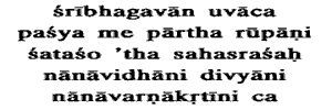 5. Then Sri Krishna showed His Viswa Roopa stating thus: "Partha, look at these varied forms of Mine.