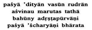 many marvels never seen before, O Bharata, Behold the twelve Adityas, the