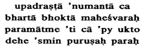 the Supreme Self, the Purusha Supreme in this body.Spectator (Upadrashtri):