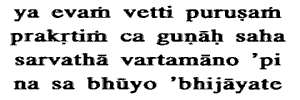 knows Purusha and Prakriti together with qualities, whatever his conduct,