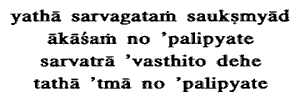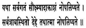 32. Just as Akasha or space; despite being everywhere, is not affected or touched by the gross things because it is a very subtle entity, in the same manner, although this Paramatman exists everywhere in the body He is not affected by its defects.