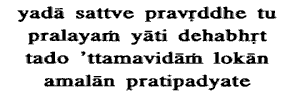 one meets death when Sattva is predominant, then he attains to the spotless