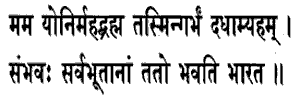 termed Brahman. In that Great Brahman I place the germ, the seed of the