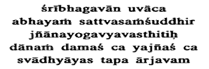 purity of heart, and steadfastness in knowledge and Yoga forms the Daivi