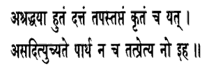 faith, it is called asat, O Partha ; it is naught here or hereafter.Given: