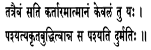 upon the pure Self as the agent, is a man of untrained understanding ; he does