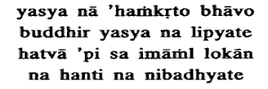 from egotistic notion, whose mind is not tainted,though he kills these creatures,