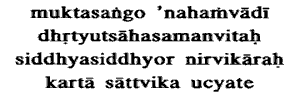 authority of the sastra, not by a desire for the fruits. Rajasic Agent. Passionate,