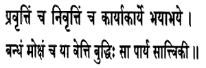 fear and absence of fear, bondage and liberation that intellect is Sattvic,