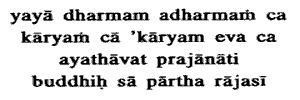 and what ought not to be done, that intellect, Partha, is Rajasic.Dharma is