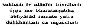 to. Practice: familiarity, frequency. The end: cessation or alleviation. sattvic