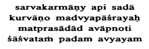 all actions whatsoever taking refuge in Me,by My Grace he reaches the eternal