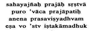 10.Having first created mankind together with sacrifices, the Prajapati said, By this shall ye propagate; let this be to you the cow of plenty.Mankind: composed of the three castes. First ; at the beginning of creation. The cow of plenty: the cow which yields all desires.How can this be achieved by sacrifice.