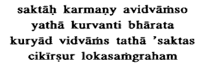 men act attached to work, O Bharata, so should the wise man act, unattached