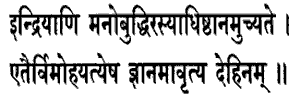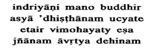 it deludes the embodied. Its seat: the seat of desire. These: the senses