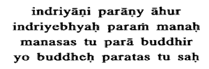 of action. So say the wise. Superior to the senses is mind (manas, the impulsive