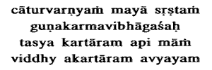 four castes (varmas, ht colours) have been created by Me, Isvara, according