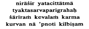 doing mere bodily action, he incurs no sin. He from whom all desires have