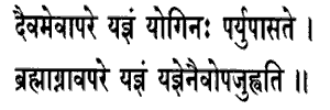 by the Self.Some yogins, devotees to action, perform only sacrificial rites