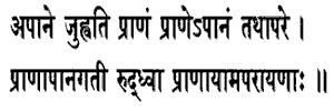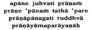 prana (outgoing breath) in apana (incoming breath, and apana in prana, restraining