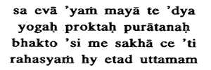 ancient Yoga has been today taught to thee by Me, seeing that thou art My