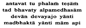 of Gods (Devatas) go to Gods (Devatas) ; My devotees come unto Me.Though