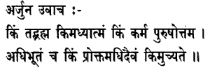 1. When Arjuna asked: "Oh, Sri Krishna, what is Brahman ? Which is Adhyaatma? Which is Karma? What are Adhibhoota, Adhidaiva, Adhiyagna ?`
