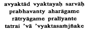 the coming on of night they dissolve there only, in what is called the Unmanifested.The